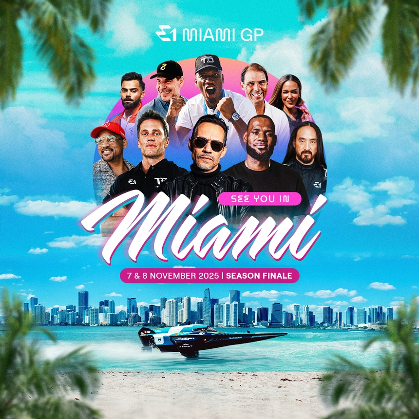John Williams, Managing Director at E1 Series said: "Miami knows how to throw a party, and this is going to be one for the books. Championship racing on the water, celebrity team owners, world-class hospitality, and a winner-takes-all finale that could go down to the wire.